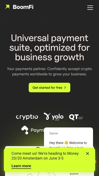 Accept, send, and convert crypto with BoomFi's sec...