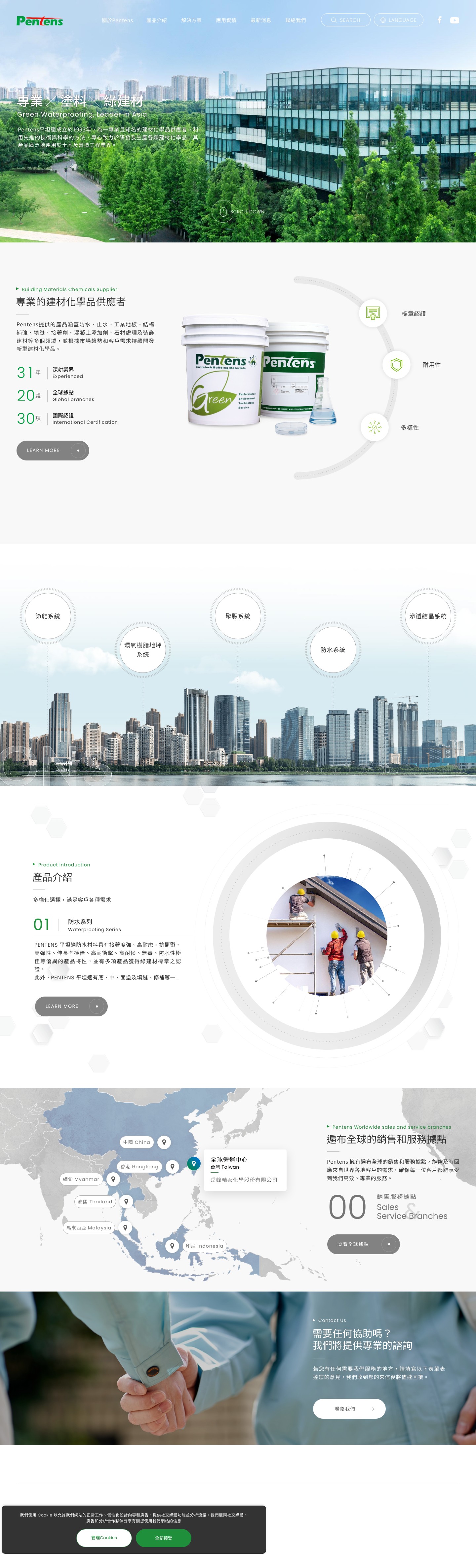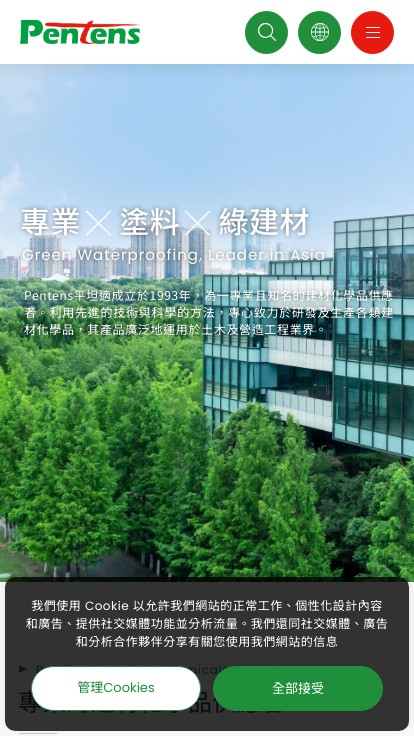 Pentens所提供的建材化學品相當地多樣化,例如:各類防水材料、止水材料、特殊用工業地板材料、結構...