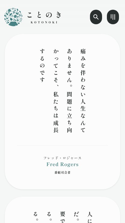 「ことのき」は、偉人・有名人・キャラクターなどのことば(名言・格言)と出会い、新しい考えや共感を生み...