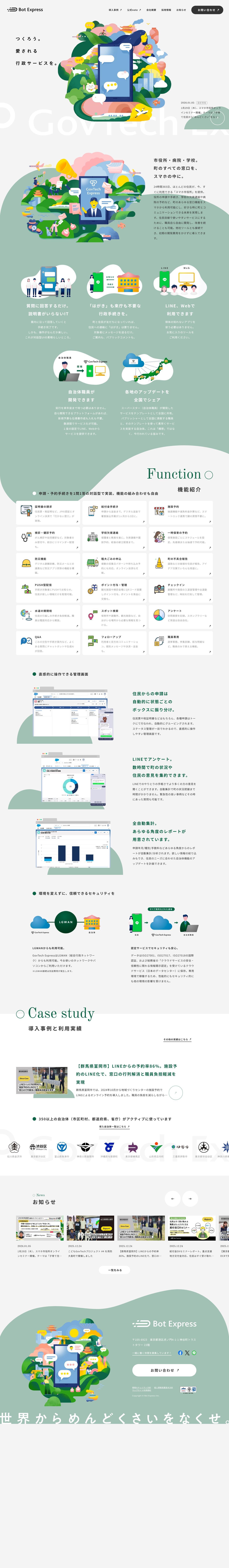 株式会社Bot Expressの公式サイト。官公庁、地方自治体が運用するLINE公式アカウント上での...