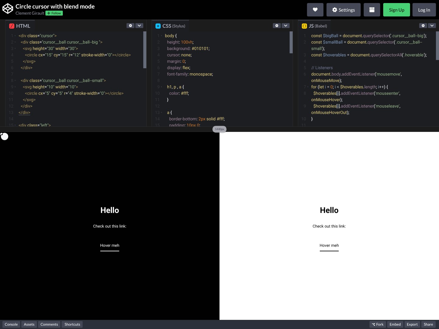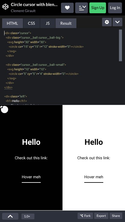 Custom cursor concept using the mix-blend-mode: di...