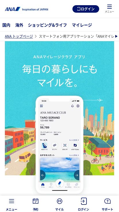 【ANA公式サイト】ANAマイレージクラブ アプリをダウンロードすれば、積算マイルの簡単確認やマイル...