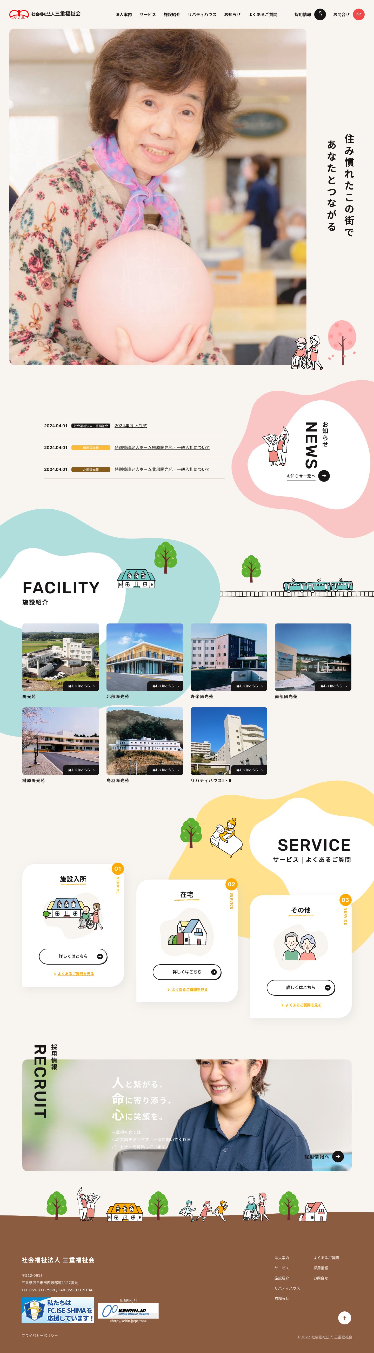 社会福祉法人 三重福祉会では、北勢・中勢・南勢地域にて特別養護老人サービスをはじめとした高齢者向け福...