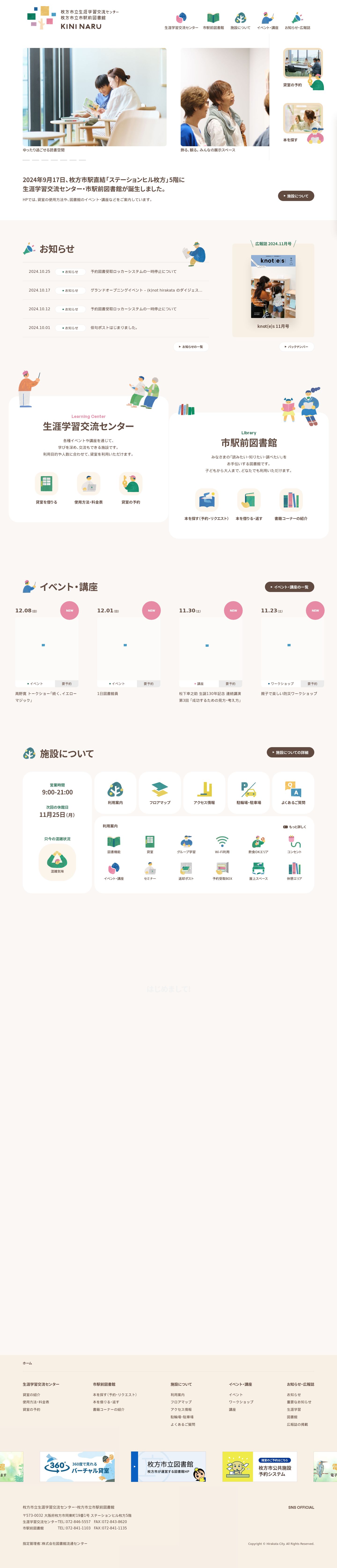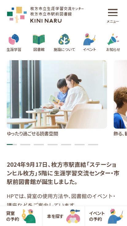 枚方市駅直結「ステーションヒル枚方」5階に誕生した生涯学習交流センター・市駅前図書館のホームページで...